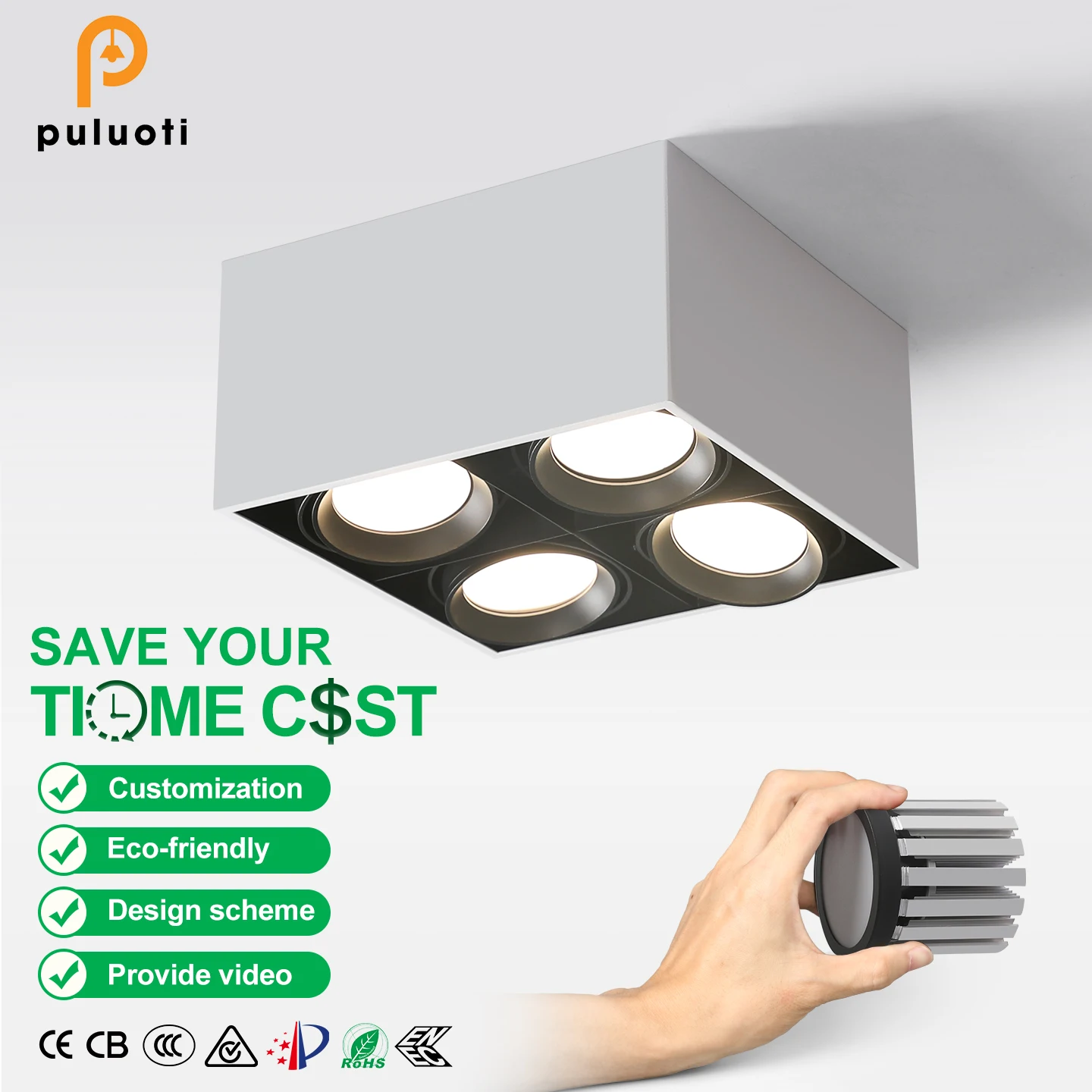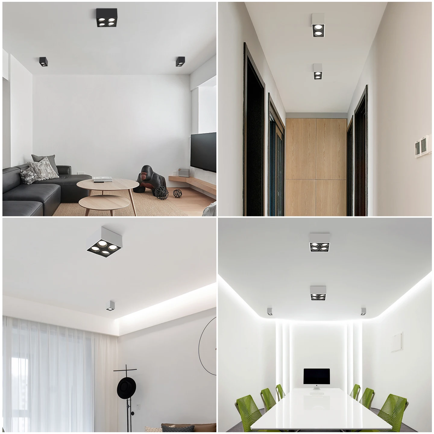 Customize Dali Zigbee Dimmable Ceiling Surface Fixed Downlight 72W Cob 4-Head Black Led Lighting Warm White Adjustable AR80